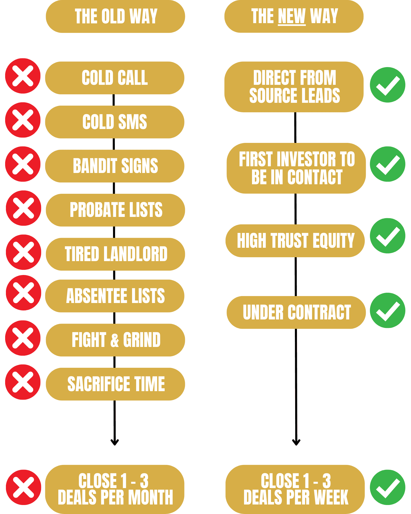 You may have been duped into believing that success is just a 'few more cold calls away', a couple more bandit signs, or diving into the deep end of Probate, Tired Landlord, and Absentee High Equity Lists.